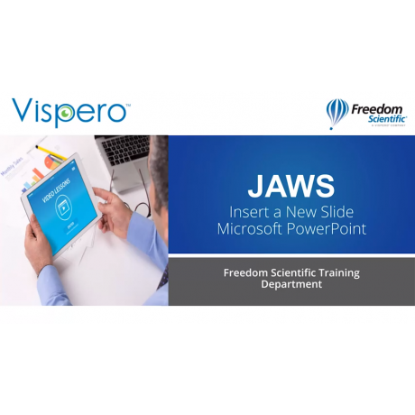 在此示範演示中,您將學習如何將新的預設幻燈片插入Microsoft PowerPoint文件中,以及如何使用JAWS的鍵盤來探索標題和項目符號點的定位游標位置。