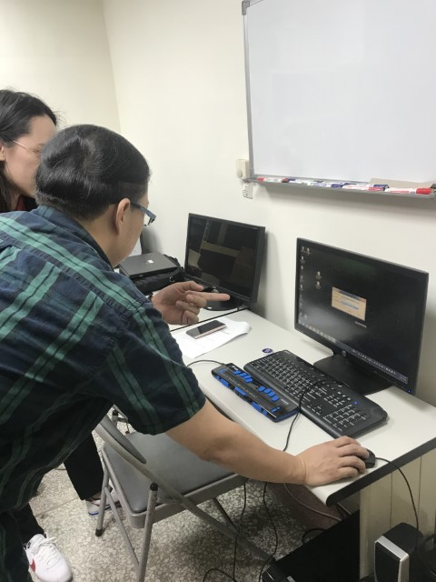 昨天聯郃國際工程部同事一同到台師大檢修一台 Freedom Focus 點字觸摸顯示器,王同學展現高超的"盲打"技巧,看得在場的小編和工程師目瞪口呆,直誇她是系上第一名的打字高手,聽說她為了這台點字觸摸顯示器練機練了二年,還自製操作手冊以"傳承"系上學弟妹,果真是「巾幗」不讓「鬚眉」啊~ #福克斯5代 40方 點顯器